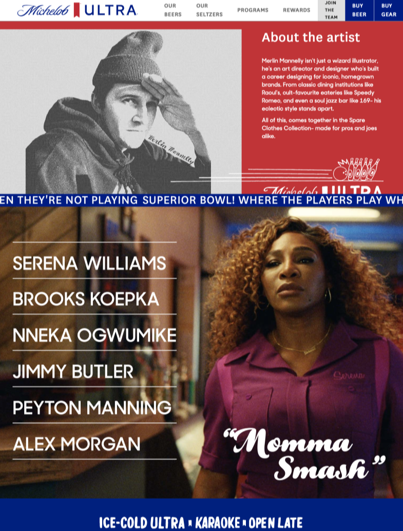 For Michelob’s Super Bowl LVI campaign, they partnered with renowned agency Wieden + Kennedy to bring to life the Superior Bowl, a fictional bowling alley where Serena Williams, Peyton Manning, Alex Morgan and more get together to blow off steam when they weren’t dominating the sports world.